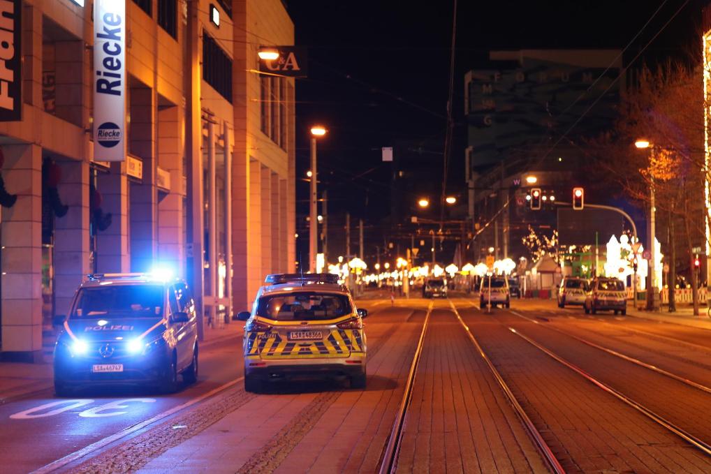 这是2024年12月21日凌晨在德国马格德堡车辆冲撞人群事发地附近拍摄的被封锁的街道。新华社记者杜哲宇摄
