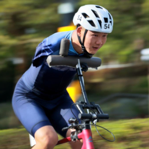 11月27日,残特奥会铁人三项比赛在广东肇庆开赛,新疆队选手邓伟在骑行。新华社发(刘春林摄)