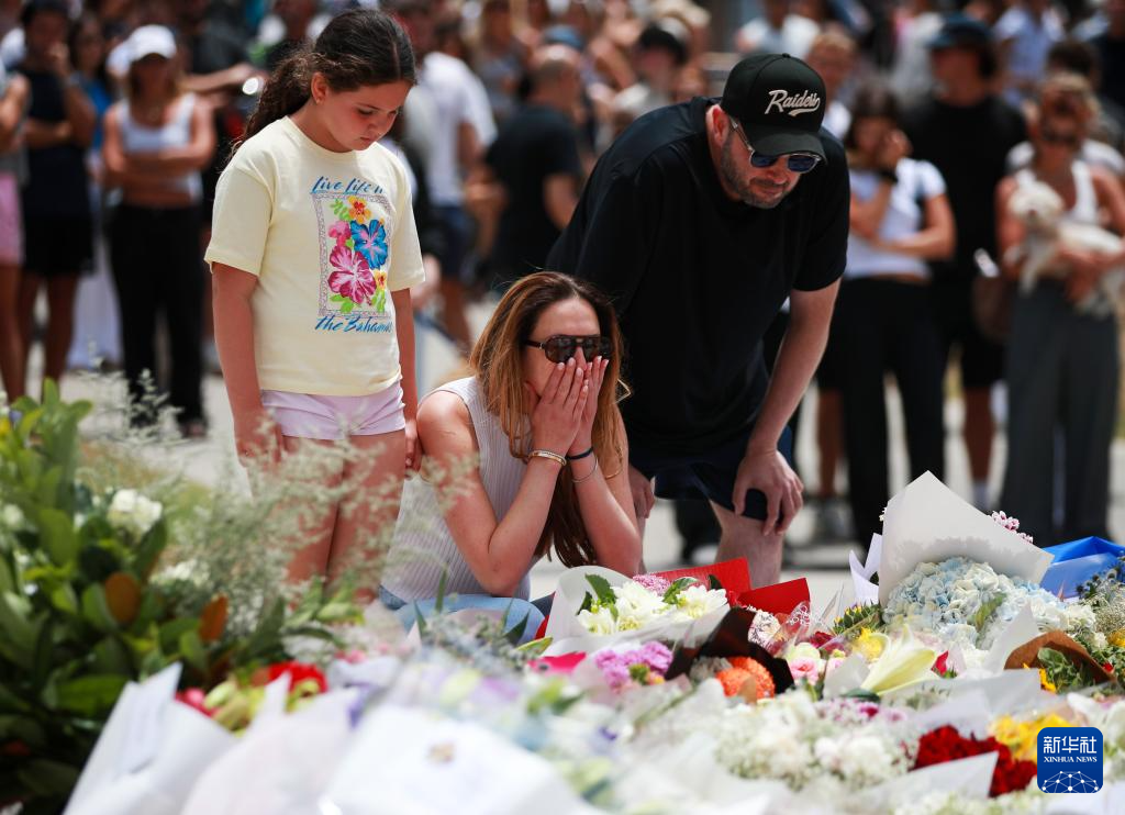 12月15日,在澳大利亚悉尼,人们在邦迪滩枪击事件现场附近悼念遇难者。新华社记者 马平 摄