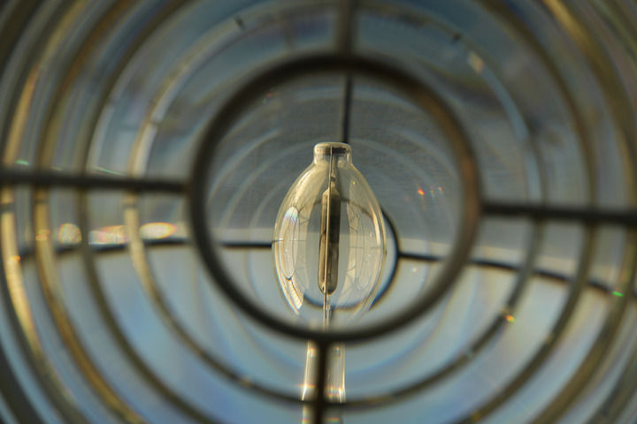 1月28日拍摄的花鸟灯塔聚光灯及透镜。据了解,旋转机每分钟旋转一圈,使聚光灯同时射出四道光线,射程为24海里。