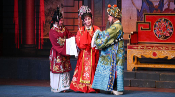 9月23日,演员在奥地利维也纳表演扬剧《吴汉三杀》。