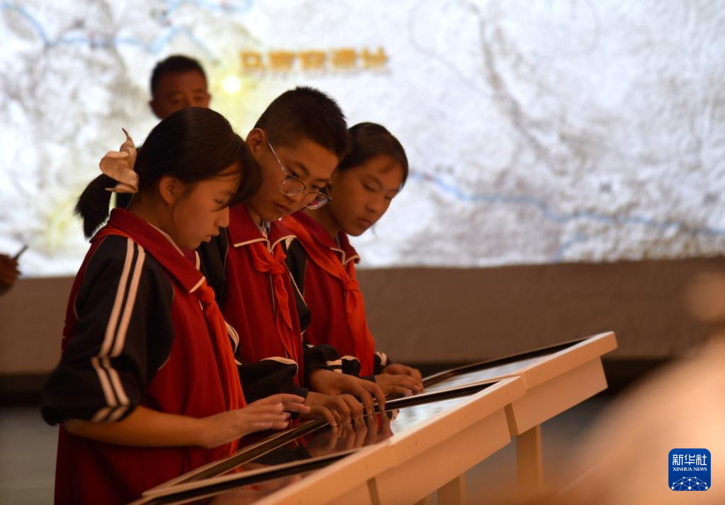 9月26日,在甘肃省临洮县马家窑文化研究展示中心,当地中学生通过数字化平台了解马家窑文化。