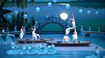 9月28日,来自中国的表演团体在柬埔寨首都金边举行的中柬中秋联谊晚会上演出。
