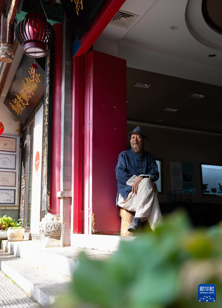 10月25日,金永才坐在昆明乌铜走银传习馆门口小憩。