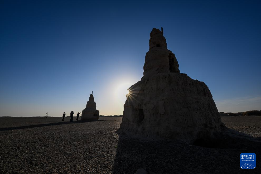 这是11月3日在内蒙古阿拉善盟额济纳旗拍摄的居延遗址中的西夏五塔遗址。