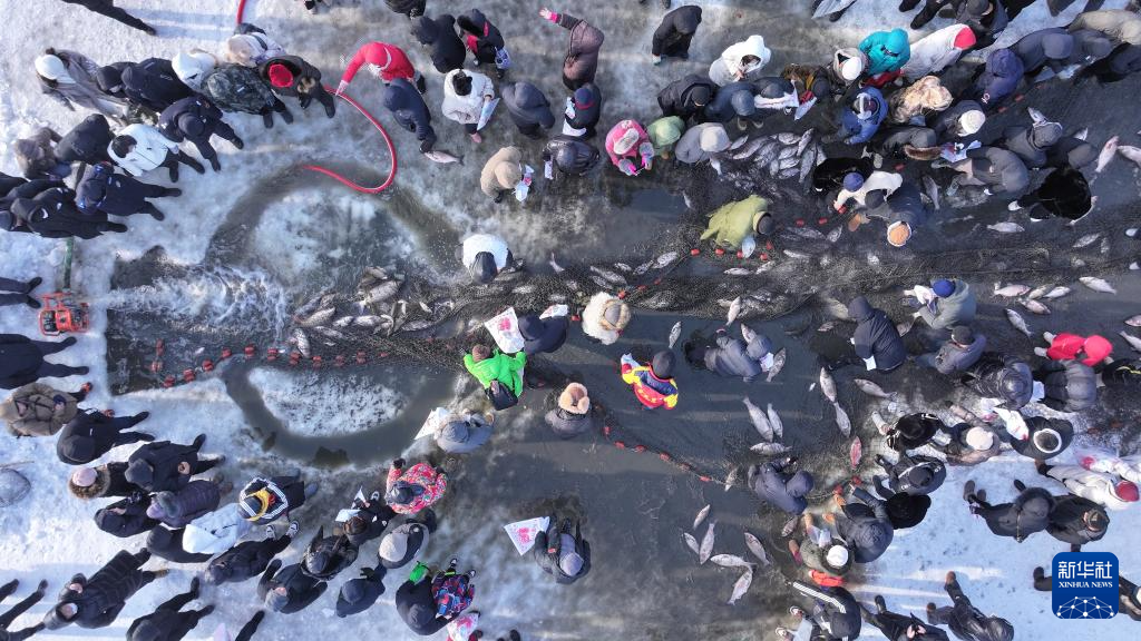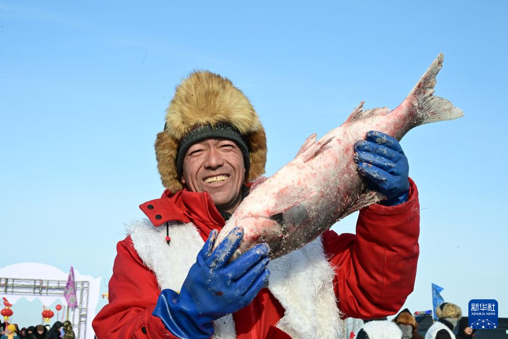 1月10日,黑龙江省肇东市举行大似海冬捕渔猎文化节,来自天南地北的游客在冬捕活动现场观看冰窟捕鱼,欣赏民俗歌舞,尽享北国风情。