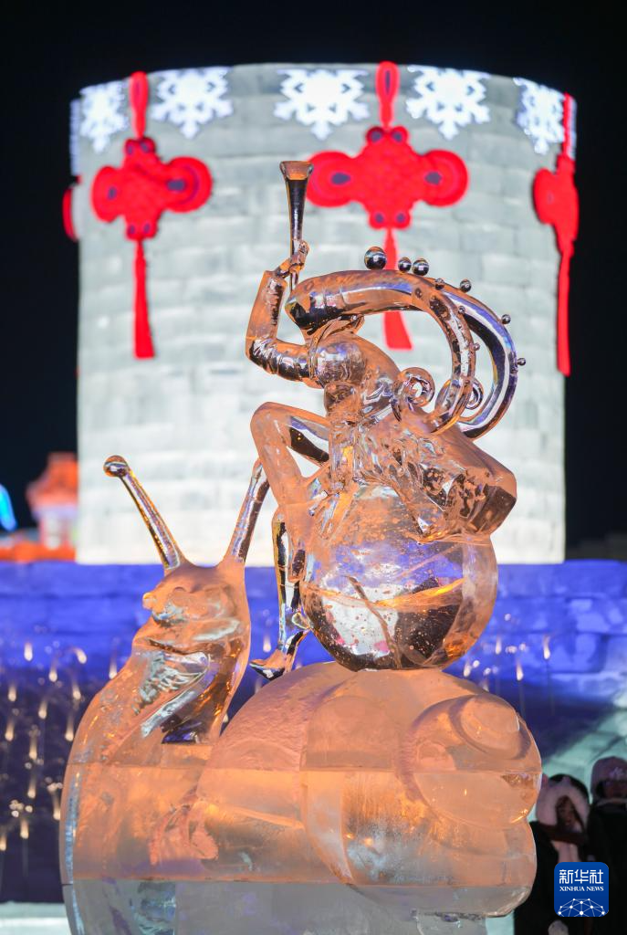 近日,一批冰雕新作在哈尔滨冰雪大世界亮相,与第37届中国·哈尔滨国际冰雕比赛作品及园区原有冰雕遥相辉映,共同点亮北国冬夜。