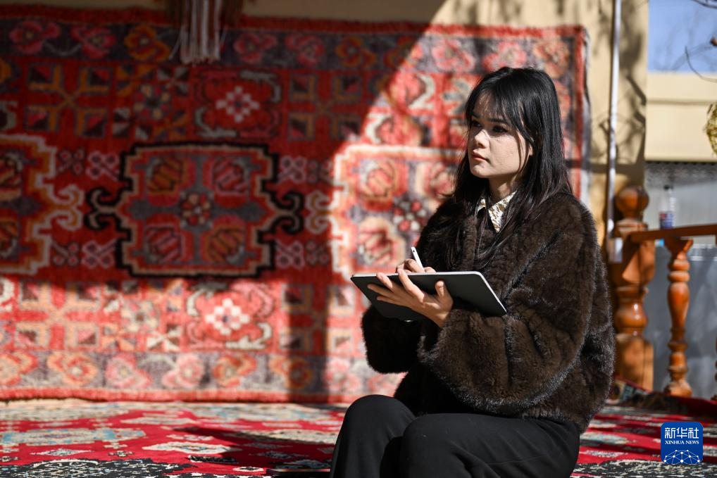 冬日清晨,一缕暖阳穿透薄雾,轻柔漫过新疆和田地区墨玉县桑皮纸产业园。24岁的穆耶赛尔·艾合麦提托合提静坐在工作室门前,低眉执笔,细细勾勒着桑皮纸文创的设计稿。