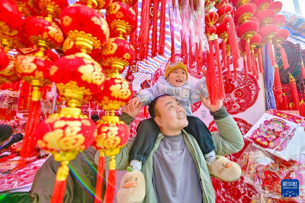 2月3日,市民在河南省开封市鼓楼区一年货市场选购春节饰品。