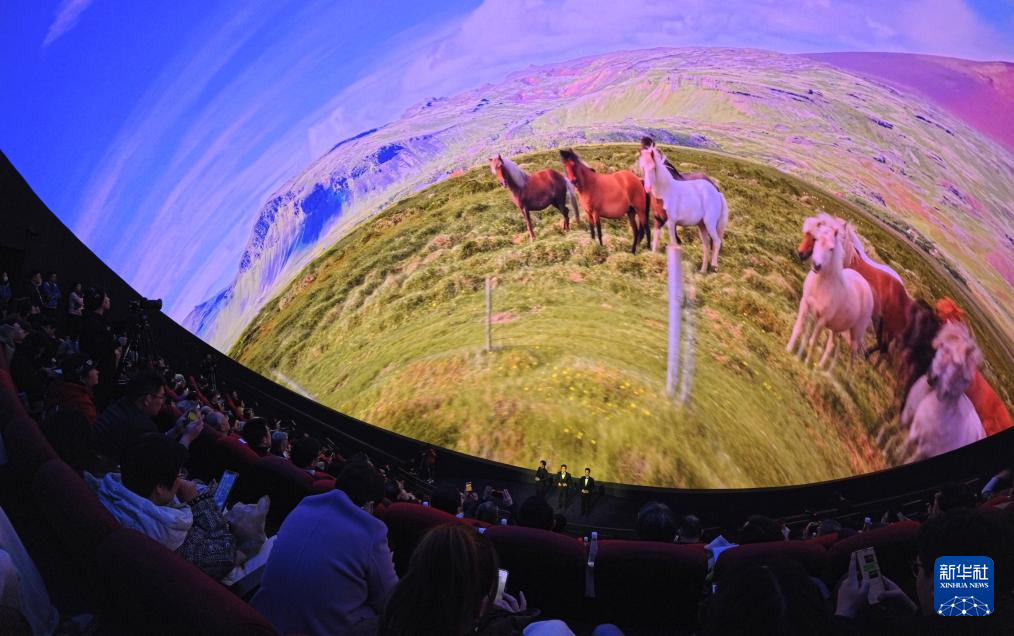2月10日,参观者在球幕影院内观看“奇骥奔腾:马的诗意行进”主题音乐会。