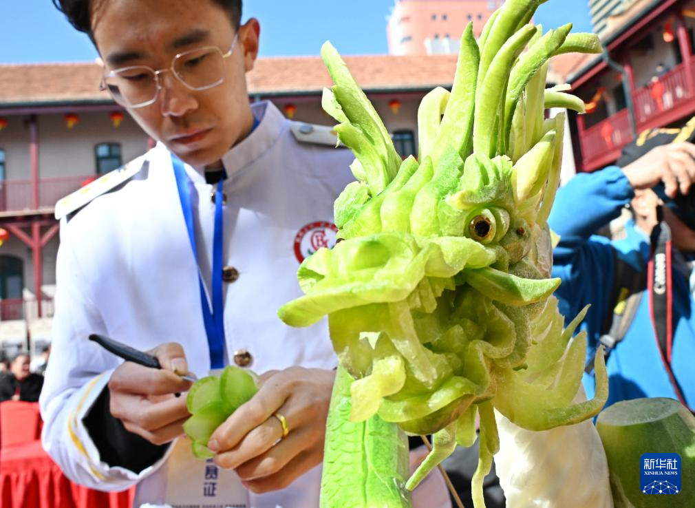 2月25日,以“非遗焕彩贺新春”为主题的2026年青岛萝卜雕刻大赛在青岛市市北区广兴里举行。来自当地餐饮行业的30多名食品雕刻技师同台竞技,集中展示食品雕刻技艺。