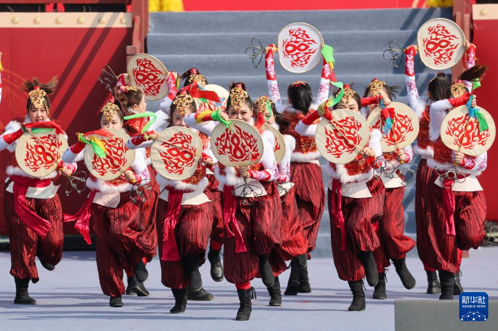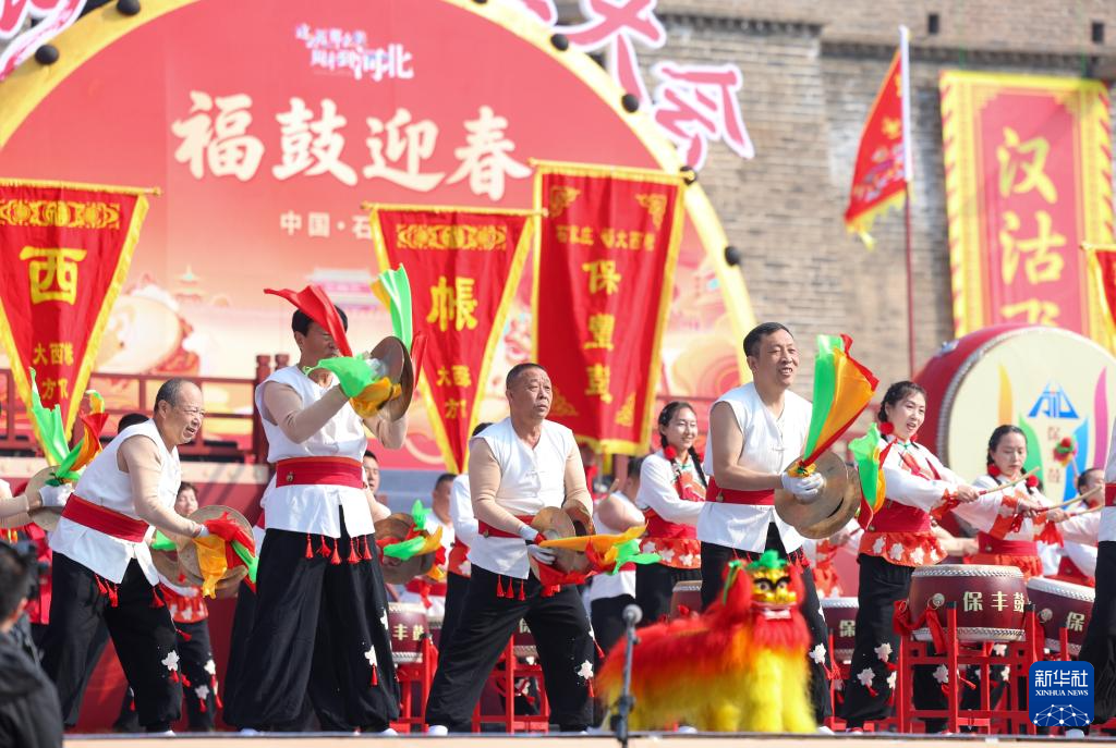 3月15日,演员在河北省石家庄市正定古城进行“安塞腰鼓”表演。