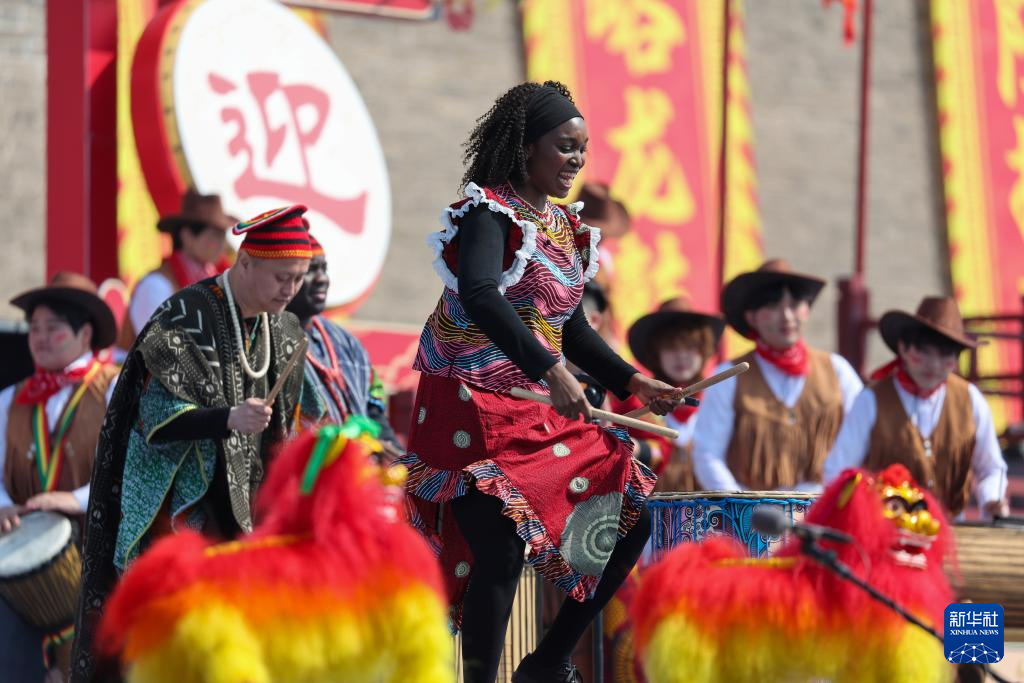 3月15日,演员在河北省石家庄市正定古城进行“非洲鼓”表演。