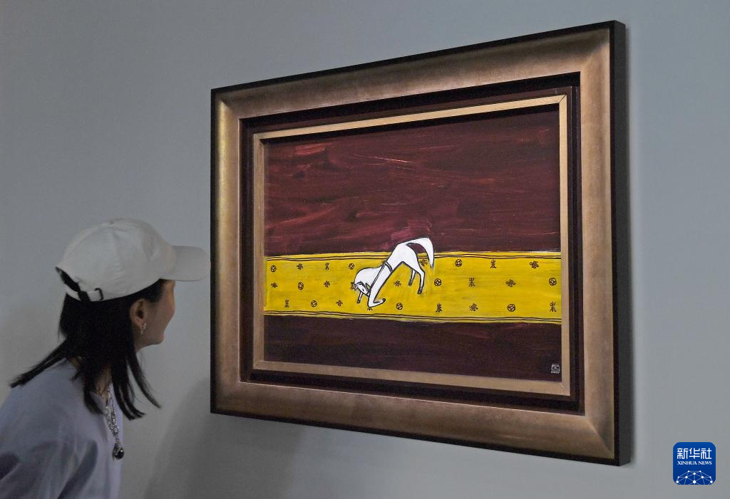 3月24日,一名女士在佳士得香港2026春季拍卖预展上观赏常玉的作品《毯上的曲腿马》。新华社记者 陈铎 摄