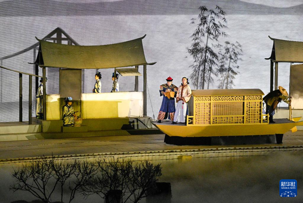4月18日晚,演员在大型实景演出《鼎盛王朝·康熙大典》中表演。