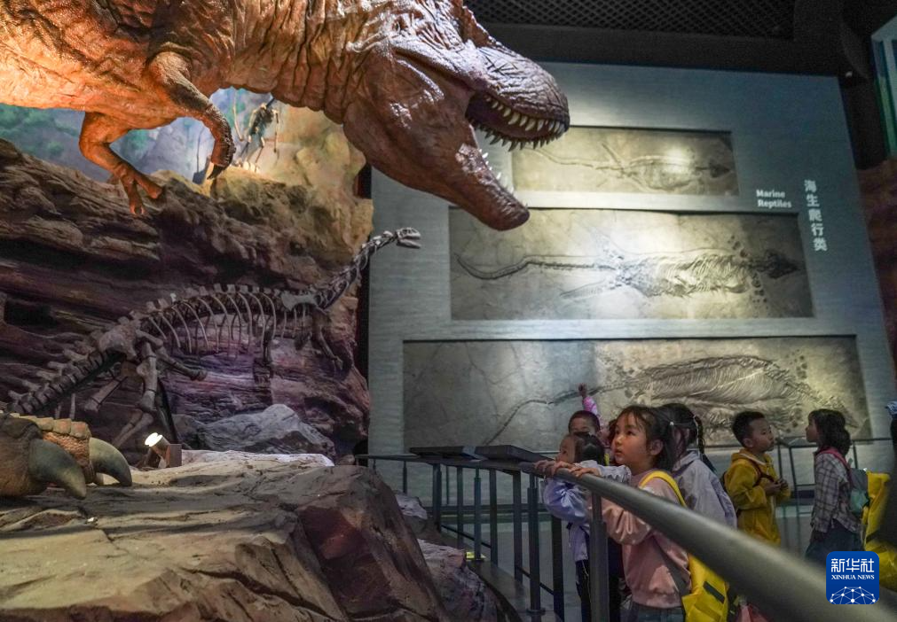4月18日,游客在澄江化石地世界自然遗产博物馆参观。