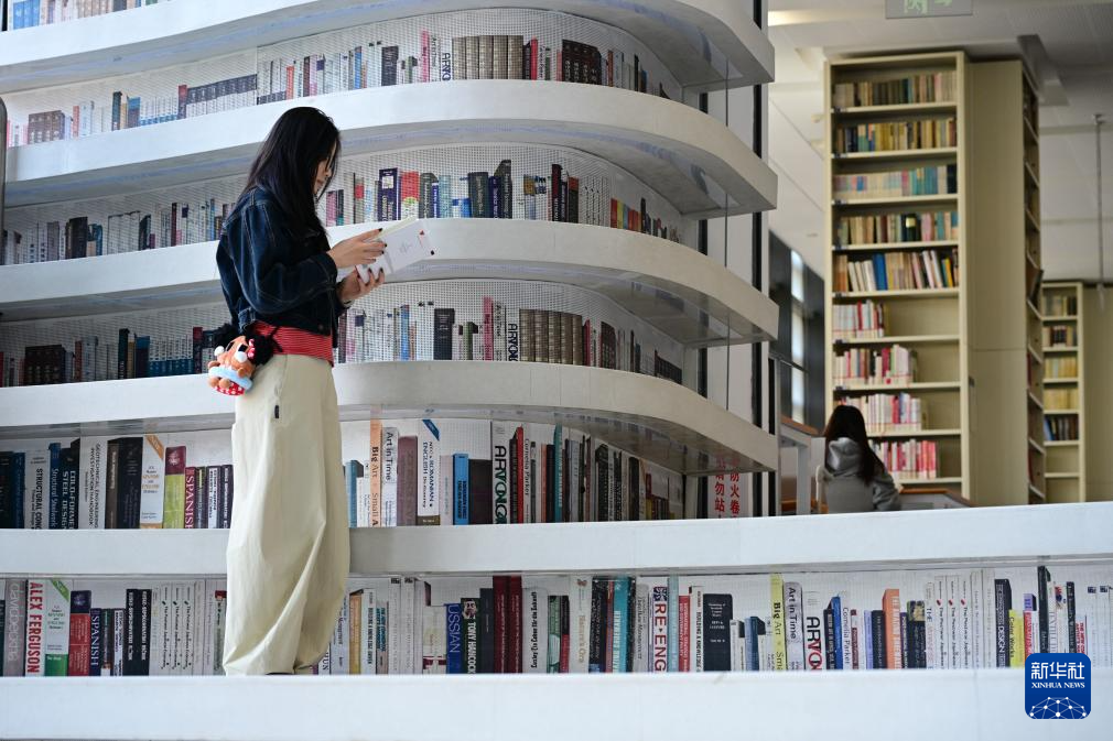 4月23日是世界读书日,不少市民和游客来到天津滨海图书馆,徜徉“书海”,享受阅读的魅力。