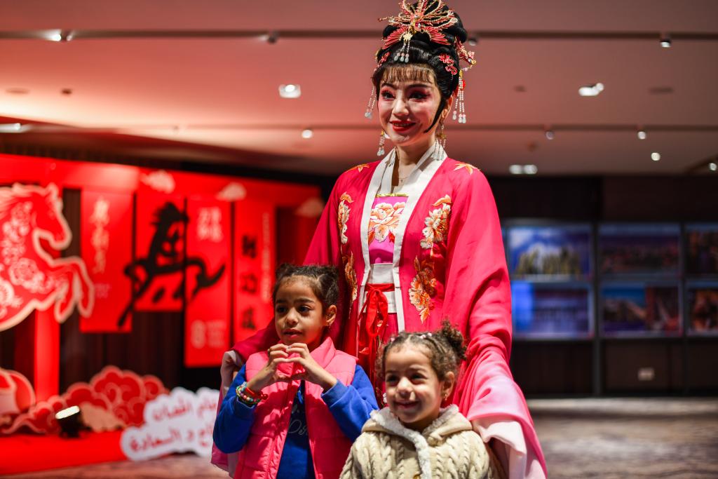 1月29日,在埃及开罗,小嘉宾与歌仔戏演员合影。