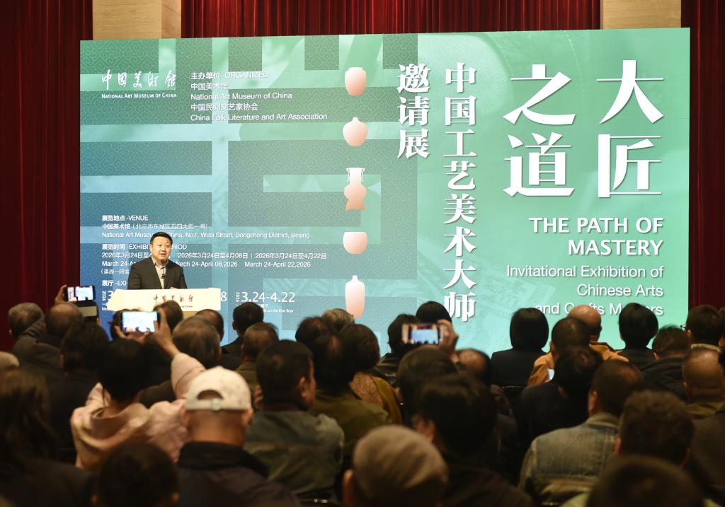 3月23日,由中国美术馆和中国民间文艺家协会共同主办的“大匠之道——中国工艺美术大师邀请展”在北京举行开幕式。据介绍,展览汇聚约200位中国工艺美术大师的近600件精品,涵盖陶瓷、雕刻、漆艺及民间工艺美术等多个门类,分设“致敬经典”“千年窑火”“造化心印”“天工器度”“经纬华章”“民艺新篇”6个篇章。