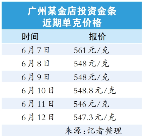 “最近黄金首饰和投资金条价格,都比前阵子跌了不少。”据广州地区一线黄金销售人员反馈,仅6月7日至12日5天时间内,该销售点的投资金条价格就已经下调了13.7元/克。记者注意到,叠加端午假期、“618”等促销活动优惠,当前不少品牌门店的黄金价格较近期历史高位相比已经出现了较大幅度下调,大多数门店金价比起节前已经回落超20元/克,甚至有品牌半个月内挂牌价回落逾30元/克。