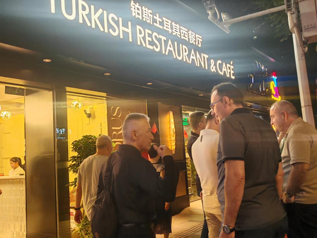 在洒德餐厅最热闹的时候,连露天位置都坐满了大快朵颐的客人。也门老板阿曼不停地与来自中东国家的顾客拥抱、握手,同时亲自为客人点单、传菜。这家店开了25年,每届广交会都像一次老友固定聚会、广交新友的机会。