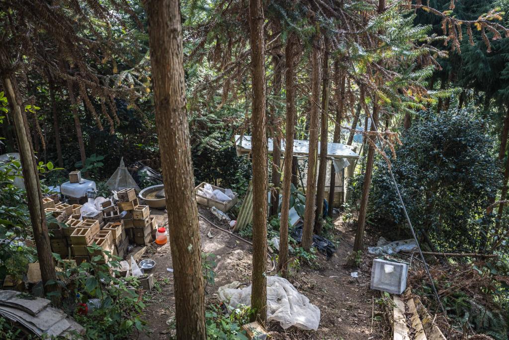 11月19日拍摄的云南省保山市龙陵县龙山镇河头村,村中可见村民在家中、门外棚房养殖的胡蜂。