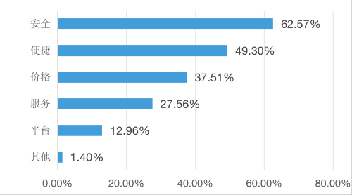 调查结果还显示,超六成(62.57%)受访者将安全作为选择网约车的首要关注因素,占比明显高于便捷性(49.30%)和价格(37.51%)。报告认为,这说明安全已成为超越便捷与价格的需求,是平台建立信任的核心基础。