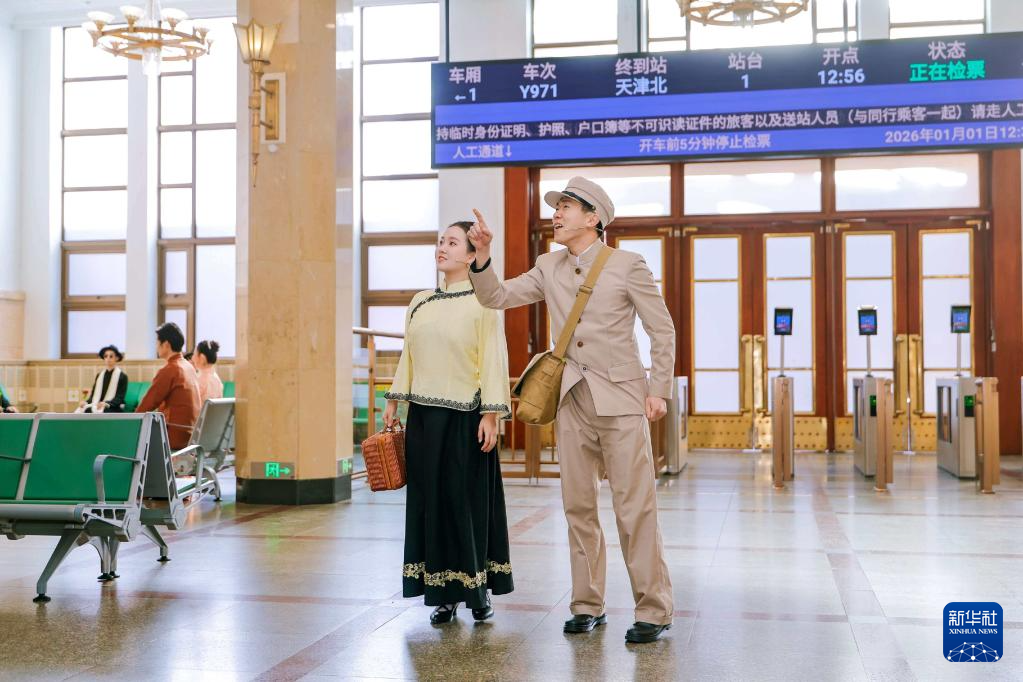 2026年1月1日,演员在天津北站候车厅表演。新华社发