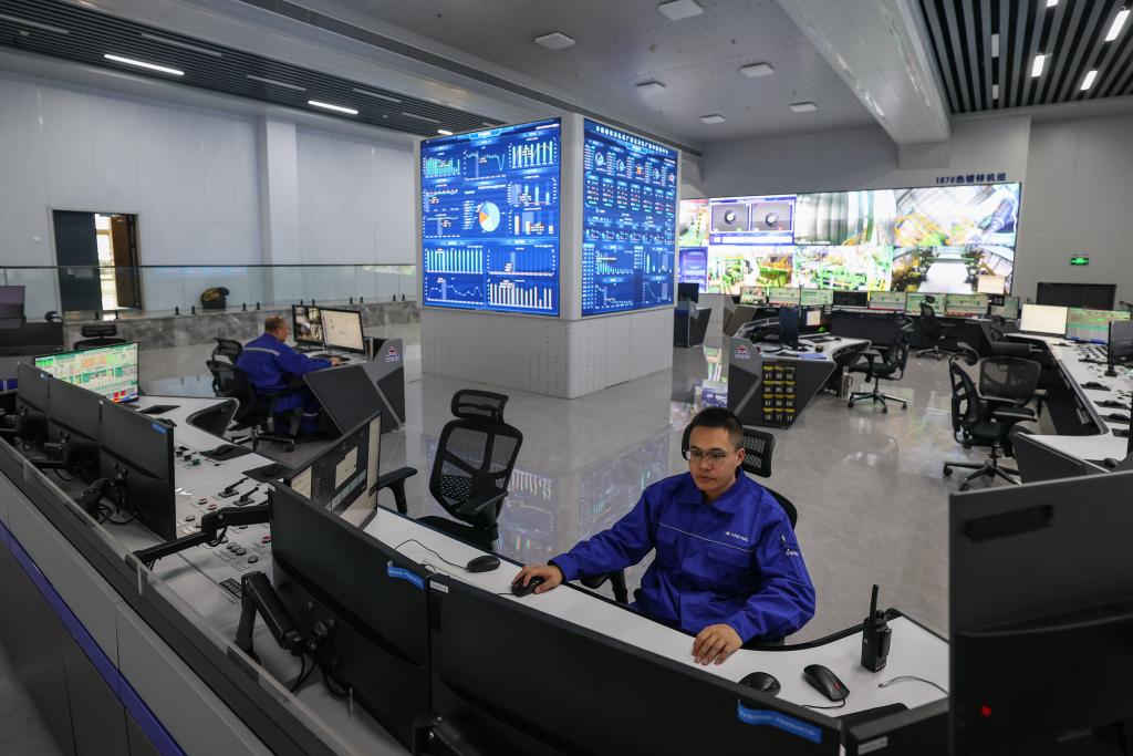 2025年12月6日,工作人员在鞍钢集团本钢板材冷轧总厂第三冷轧厂集控中心监控设备运行情况。新华社记者 潘昱龙 摄