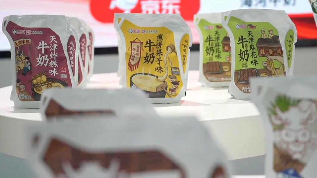 除传统乳制品,企业聚焦年轻消费群体,不仅让牛奶好喝,更要“好玩”。“煎饼果子”“香菜牛油果”“天津麻花”等新口味不断出新,引爆年轻人的“流量话题”。文化与乳品融合,海河花色奶就这样“闯”入了年轻人的朋友圈。
