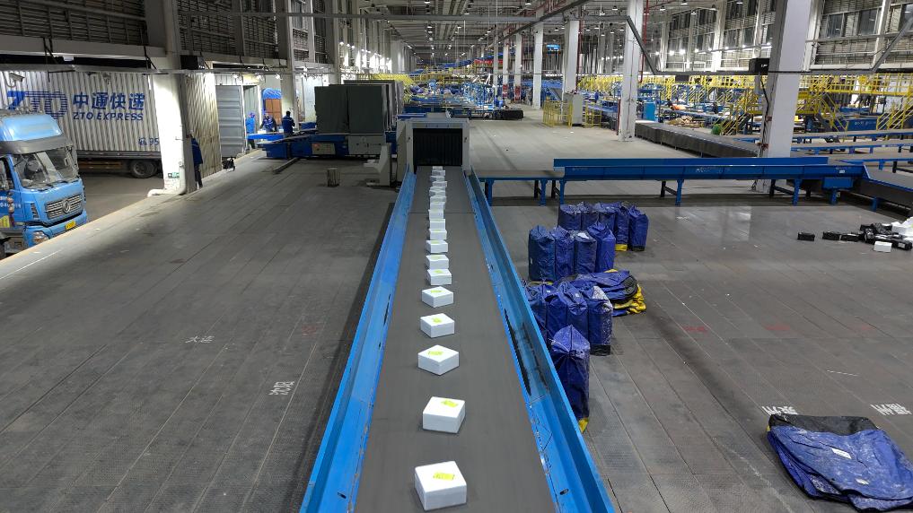 在蒙自蓝莓核心产区的中通网点,分拣、打包、装车作业高效开展。一颗颗新鲜蓝莓经专属防撞包装后,即刻送往消费者所在地区。