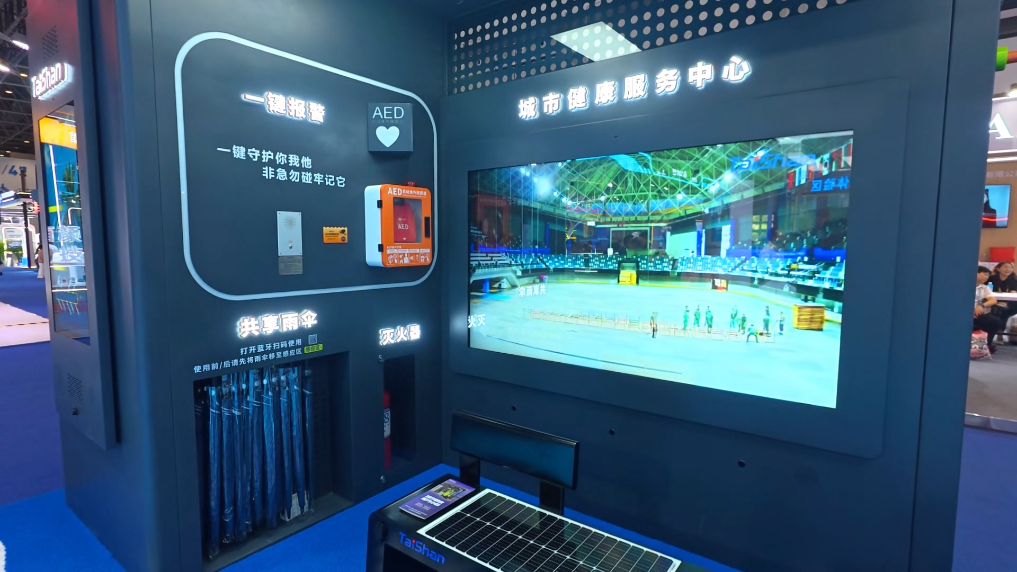 当你站在公交站台等车间隙,你会发现一个“未来场景”:这里能骑动感单车、做拉伸、测体质、借雨伞、给手机充电。在第六届消博会现场,就有这样一座格外吸睛的“未来公交站台”。