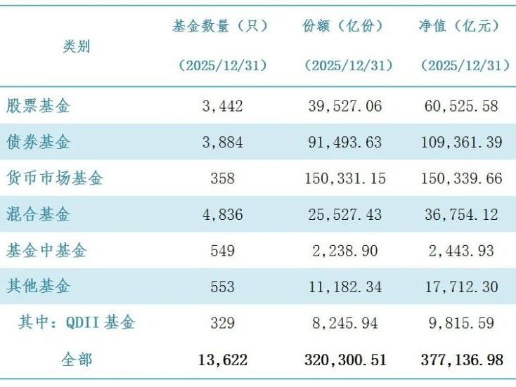 截至2025年末我国境内公募基金规模达37.71万亿元
