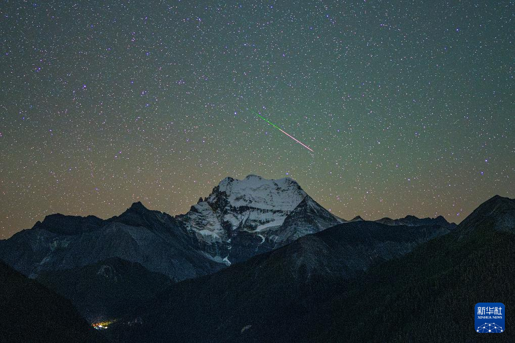 10月22日凌晨在四川省甘孜藏族自治州稻城亚丁景区拍摄的猎户座流星雨。