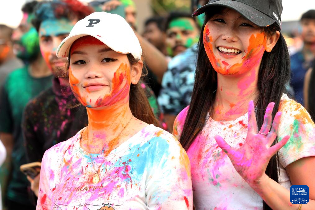洒红节也叫胡里节,人们在节日期间互相涂抹颜料,迎接春天的到来。