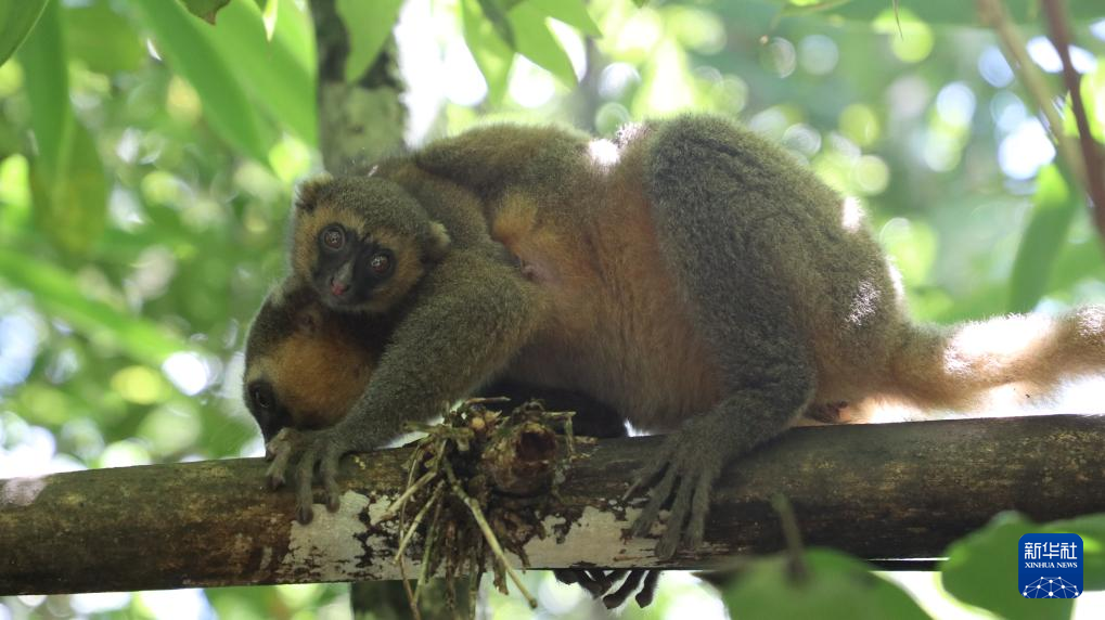 这是3月19日在马达加斯加菲亚纳兰楚阿省拉努马法纳国家公园拍摄的褐狐猴。