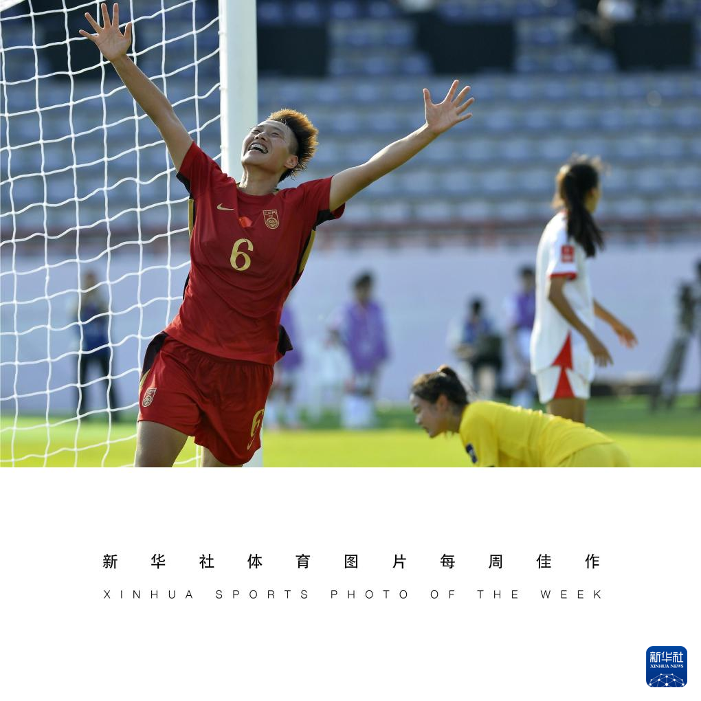 4月1日,中国队球员郑璐在比赛中庆祝进球。