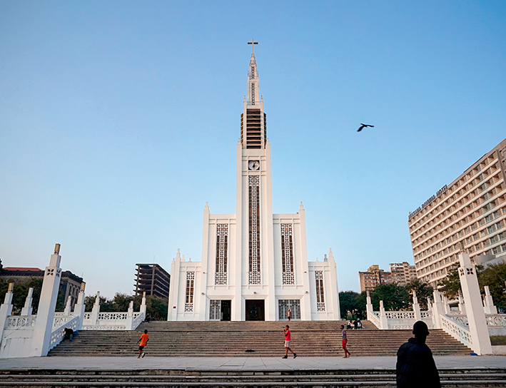 距离独立广场不远处,有一座造型前卫、洁白高耸的哥特式建筑,那是马普托大教堂——城市最具代表性的地标之一。这座由葡萄牙建筑师设计的教堂落成于1944年,主塔高约60米,通体洁白的外立面在阳光下熠熠生辉,宛如一座“信仰灯塔”,在城市森林中显得别具一格。