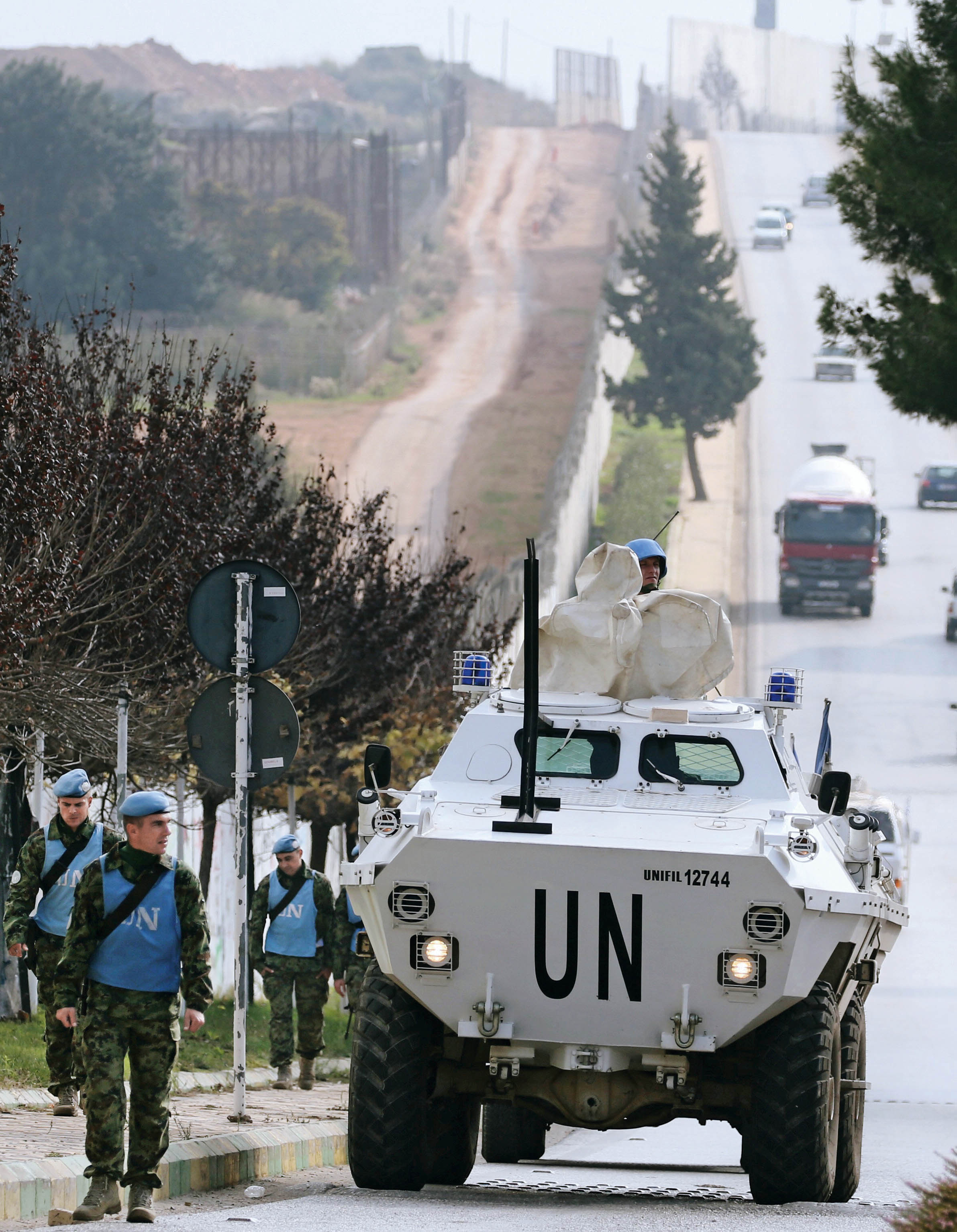联合国维和人员在黎巴嫩基拉村靠近以色列边境处巡逻