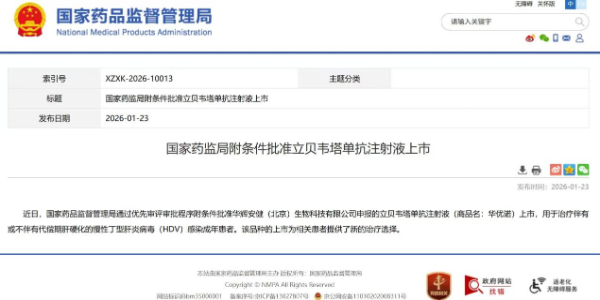 立贝韦塔单抗(华优诺)获得国家药监局上市许可批准