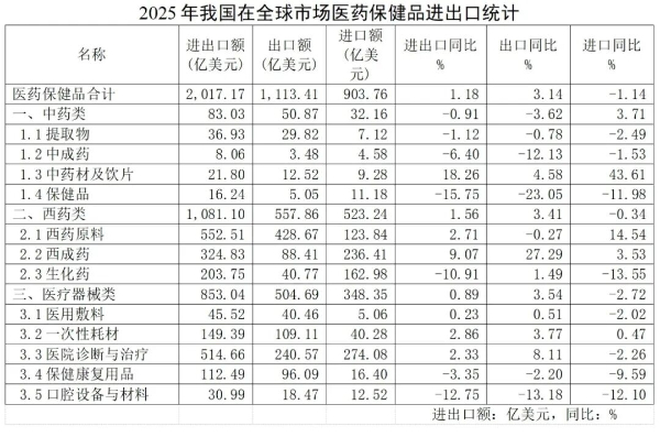 出口强劲、结构升级:2025年中国医药保健品贸易展现高质量发展韧性