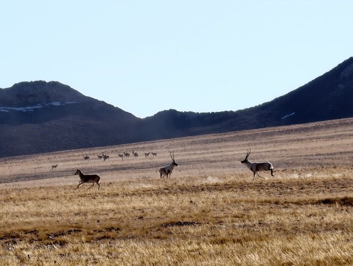 “这里的草最好,估计马上就能看见藏羚羊。”随着尚鹏手指的方向望去,不久山脚下便跃出几个模糊的影子,快速移动着。