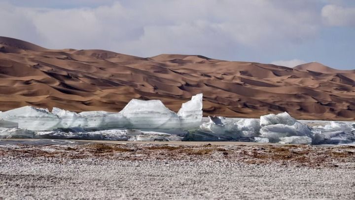 无垠的沙丘拥抱着层叠的冰面,小沙湖湖面隆起一道道银线般的冰推,凝结着亘古荒原的记忆。“这究竟是沙漠,还是凝固的海?”在阿尔金山国家级自然保护区度过的第七天,站在世界上海拔最高的库木库里沙漠边缘,站在大自然任性又精妙的杰作里,我的大脑仿佛产生了幻觉。