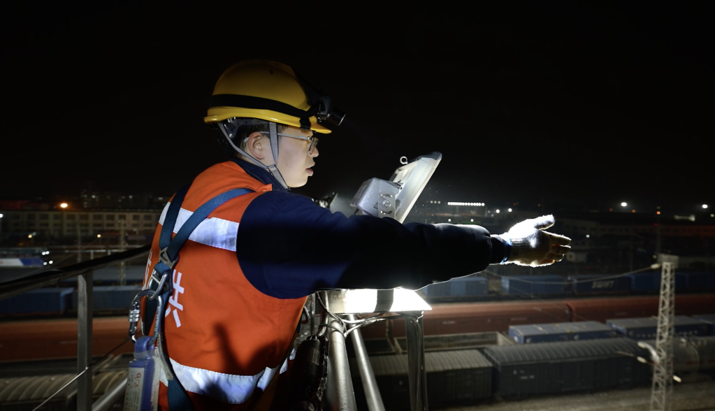 LED灯比卤素灯节能超过50%、寿命更长,但光线更具方向性,调试角度成为关键。“既要照亮钢轨,又不能产生眩光影响司机视线。”赵浚臣和同事们依靠手感与长期积累的经验,一盏一盏手动调整灯具角度。由于白天无法观察光照效果,他们常常需要在夜间登高,根据实际照射范围进行微调。