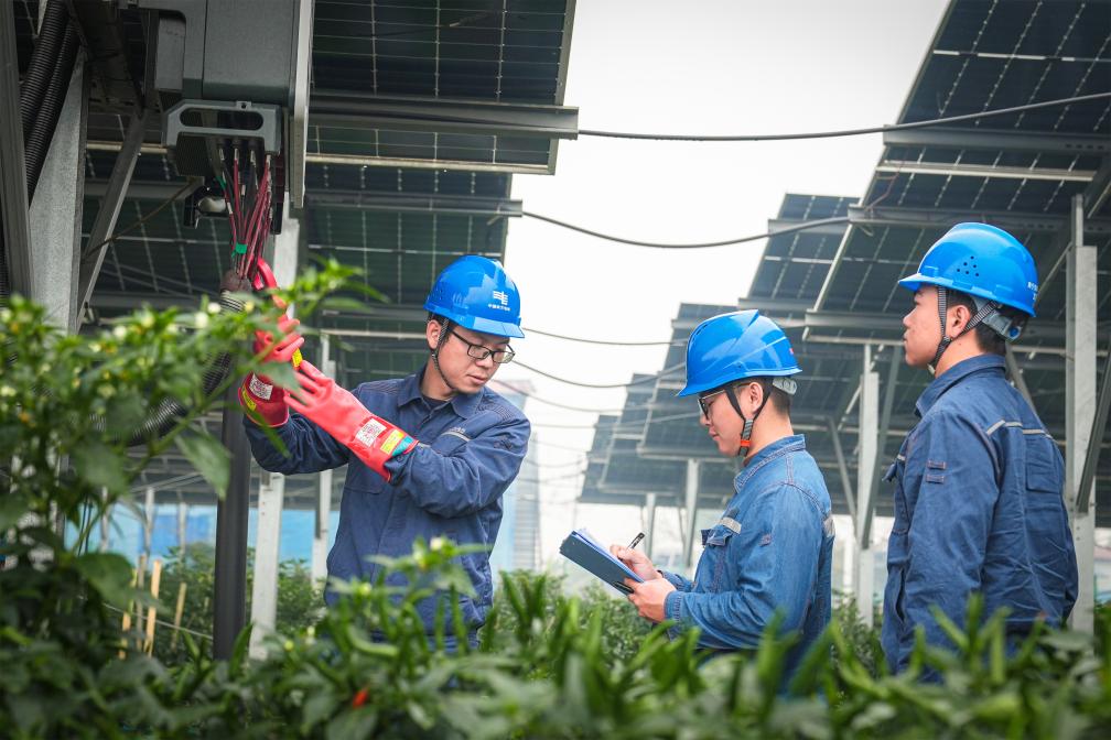 南方电网广西南宁宾阳供电局员工到农光互补项目基地开展用电检查。新华社发