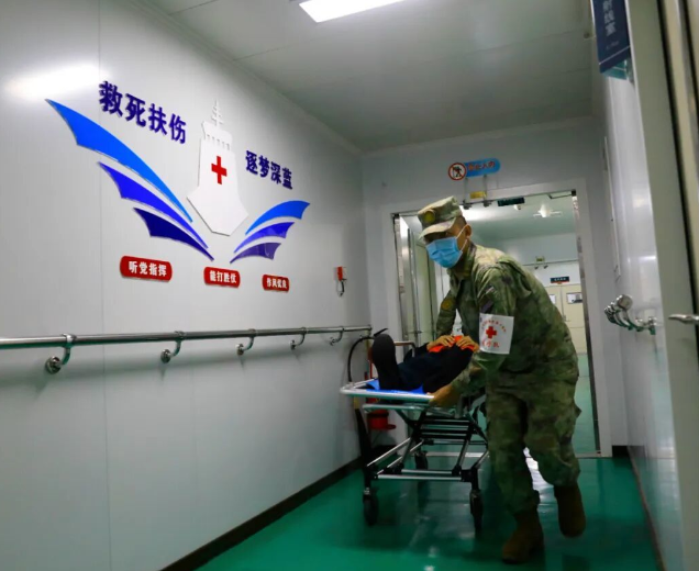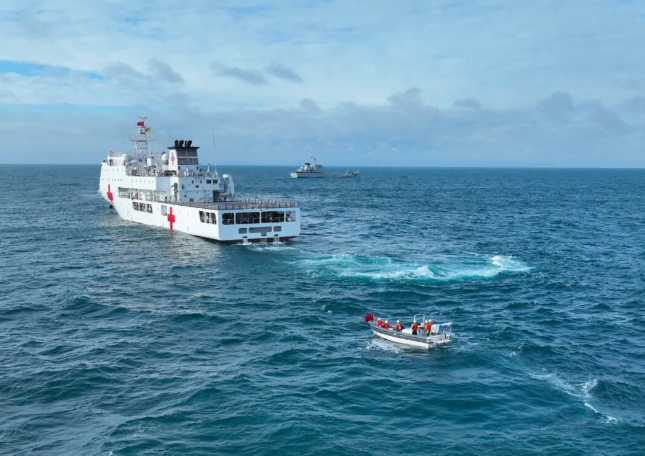 “前方发现橙色目标,疑似多名落水人员!”“救生部署!”确认“落水人员”后,医院船立即开展救生部署,官兵迅速携带装具,乘坐小艇前出营救。在对“落水人员”实施抢救后,小艇第一时间将“伤员”转运到医院船进一步救治。
