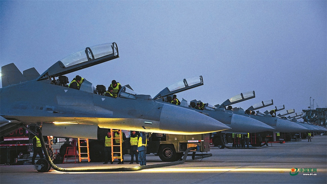 隆冬,寒风凛冽。空军航空兵某旅机场上战机轰鸣,各类保障车辆往来穿梭,紧张的训练氛围扑面而来。