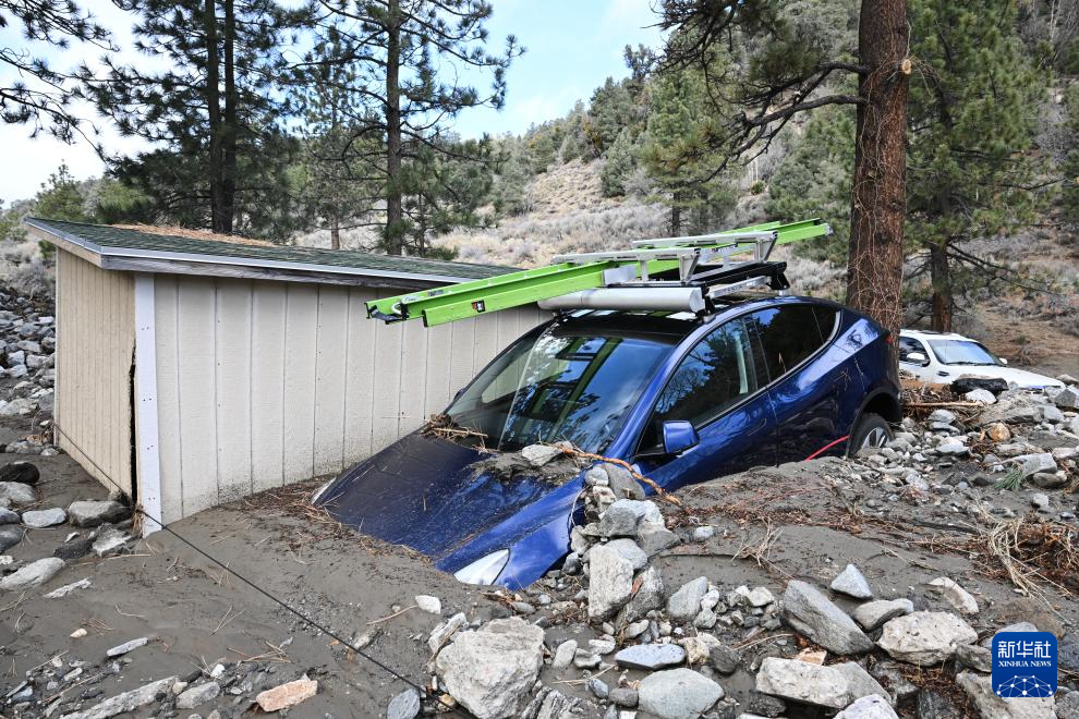 这是12月25日在美国加利福尼亚州赖特伍德拍摄的在风暴中受损的汽车。