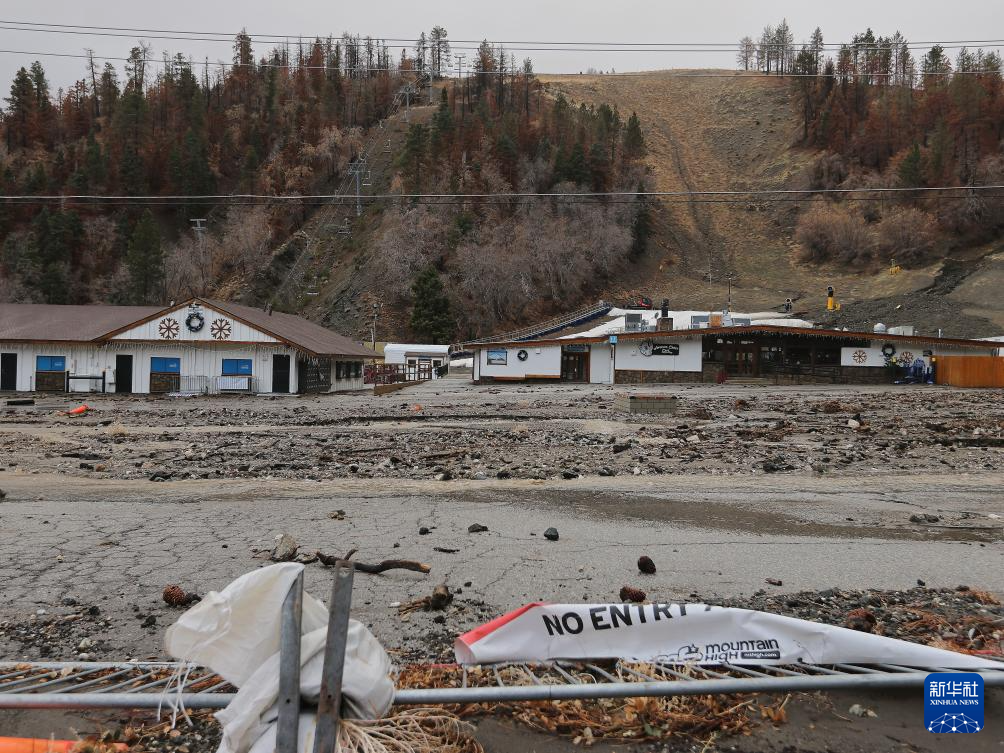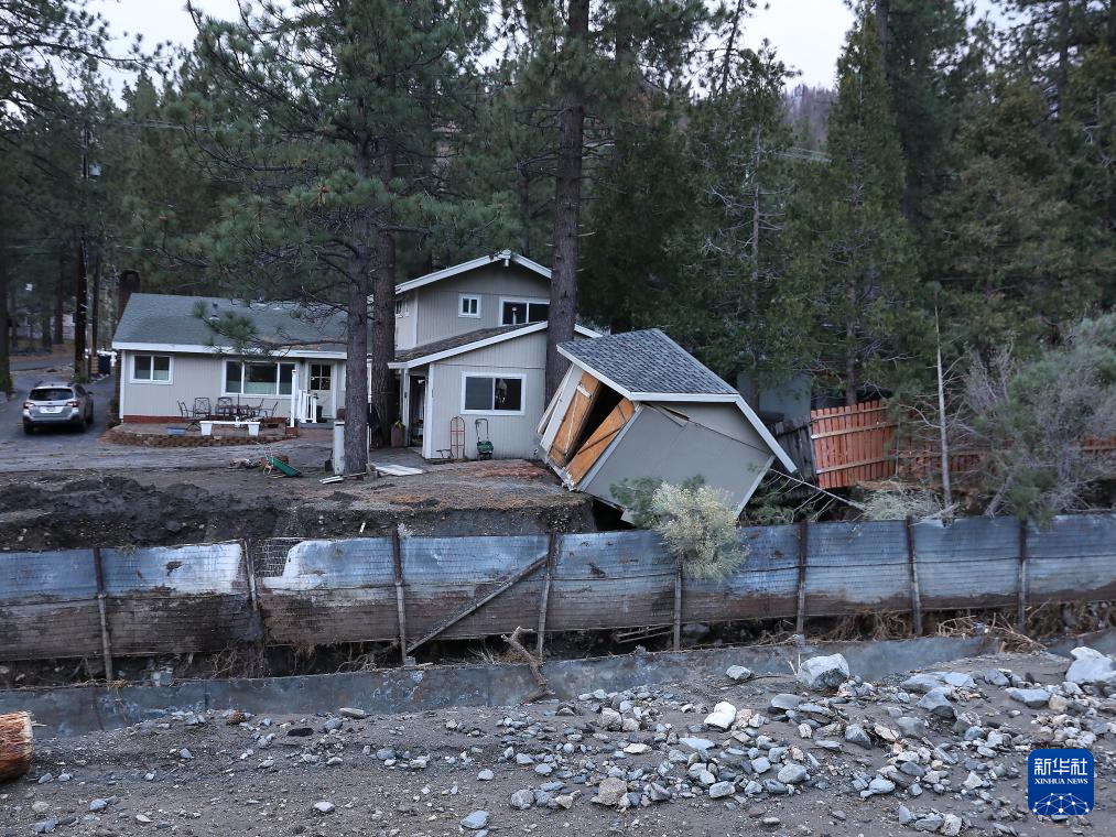 这是12月25日在美国加利福尼亚州圣贝纳迪诺县赖特伍德拍摄的一处受损的滑雪场。