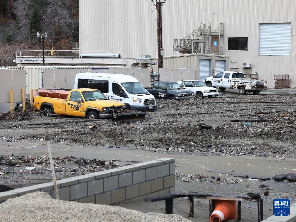 12月25日,在美国加利福尼亚州圣贝纳迪诺县赖特伍德附近,人们在一处滑雪场查看受灾情况。